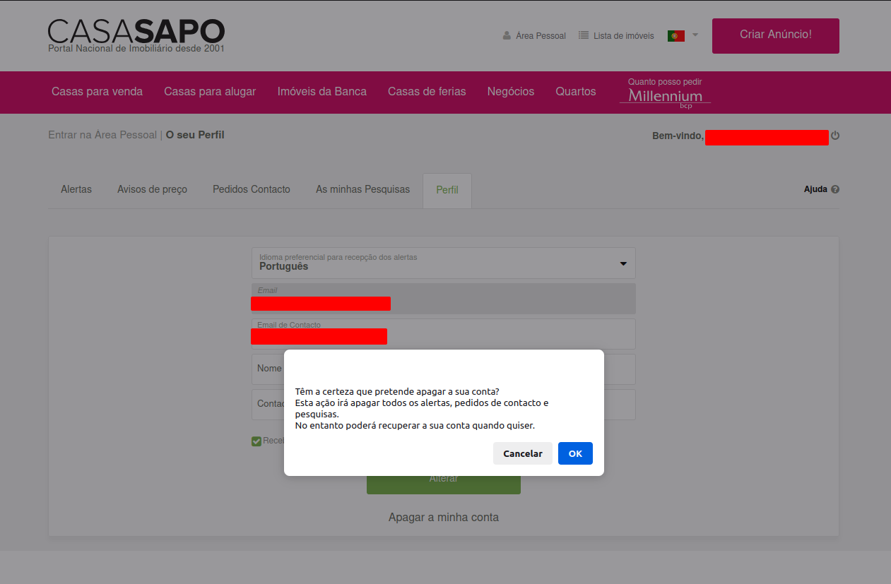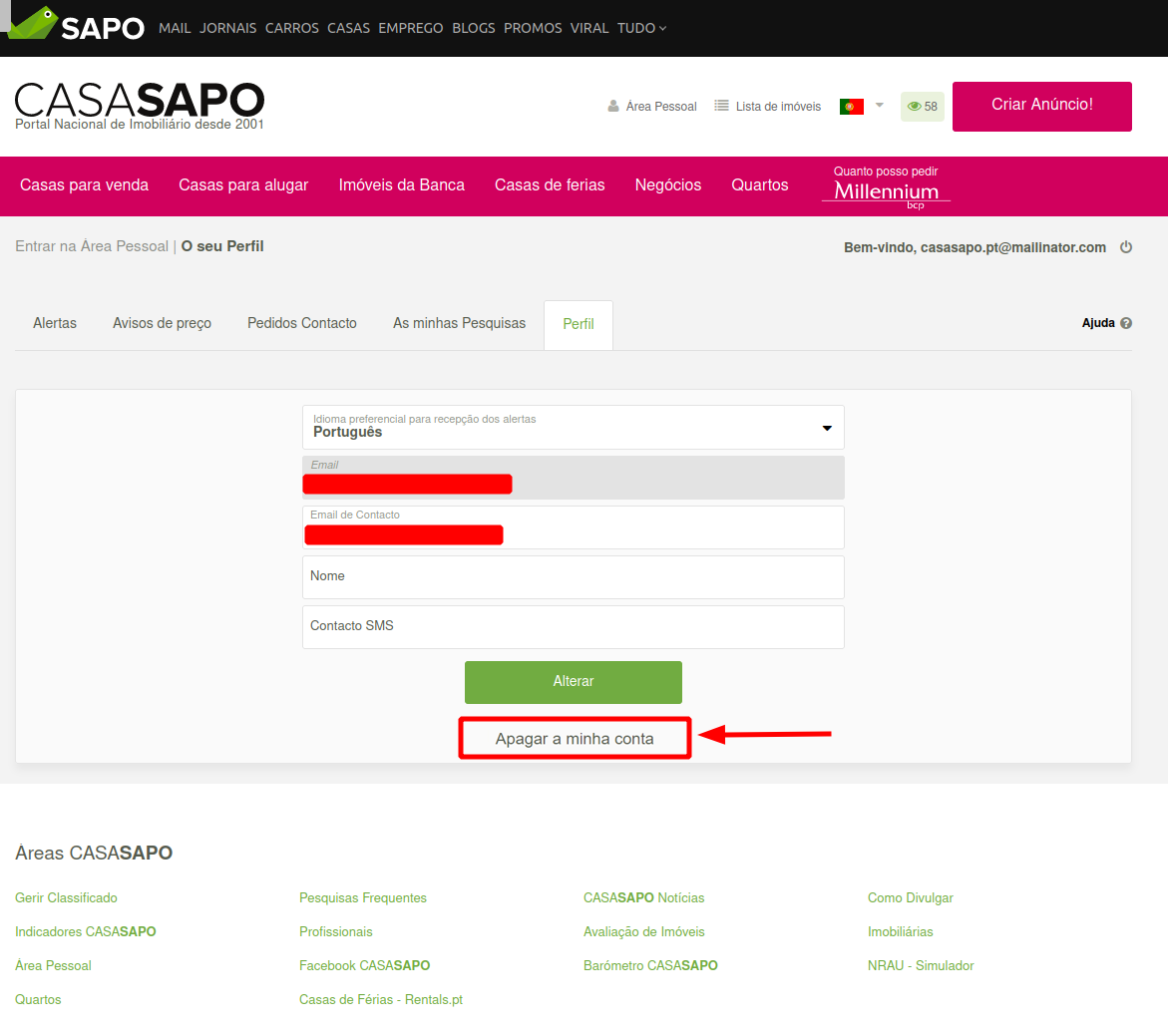 O utilizador pode eliminar a sua conta a qualquer momento, através de https://casa.sapo.ao/AreaPessoal/AreaPessoal.aspx?MCSPage=userProfile.